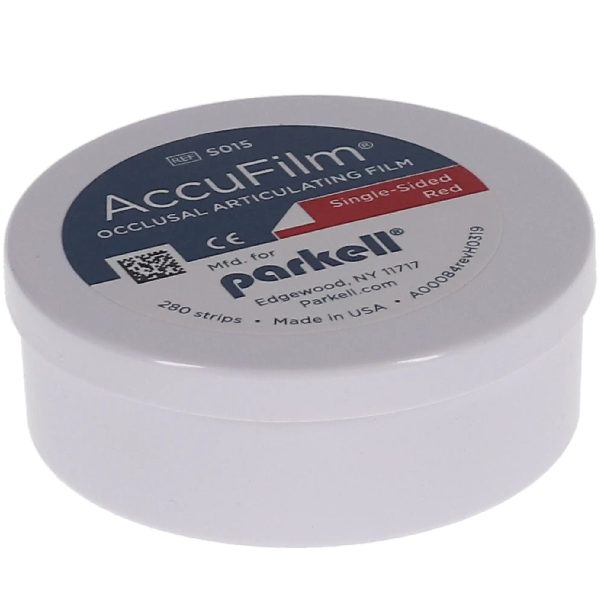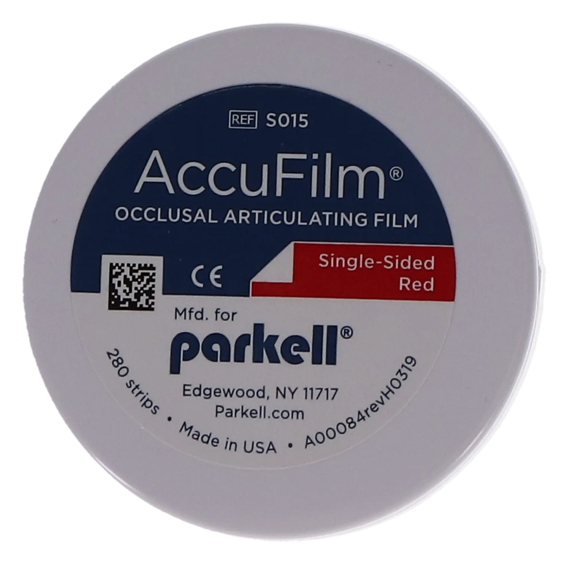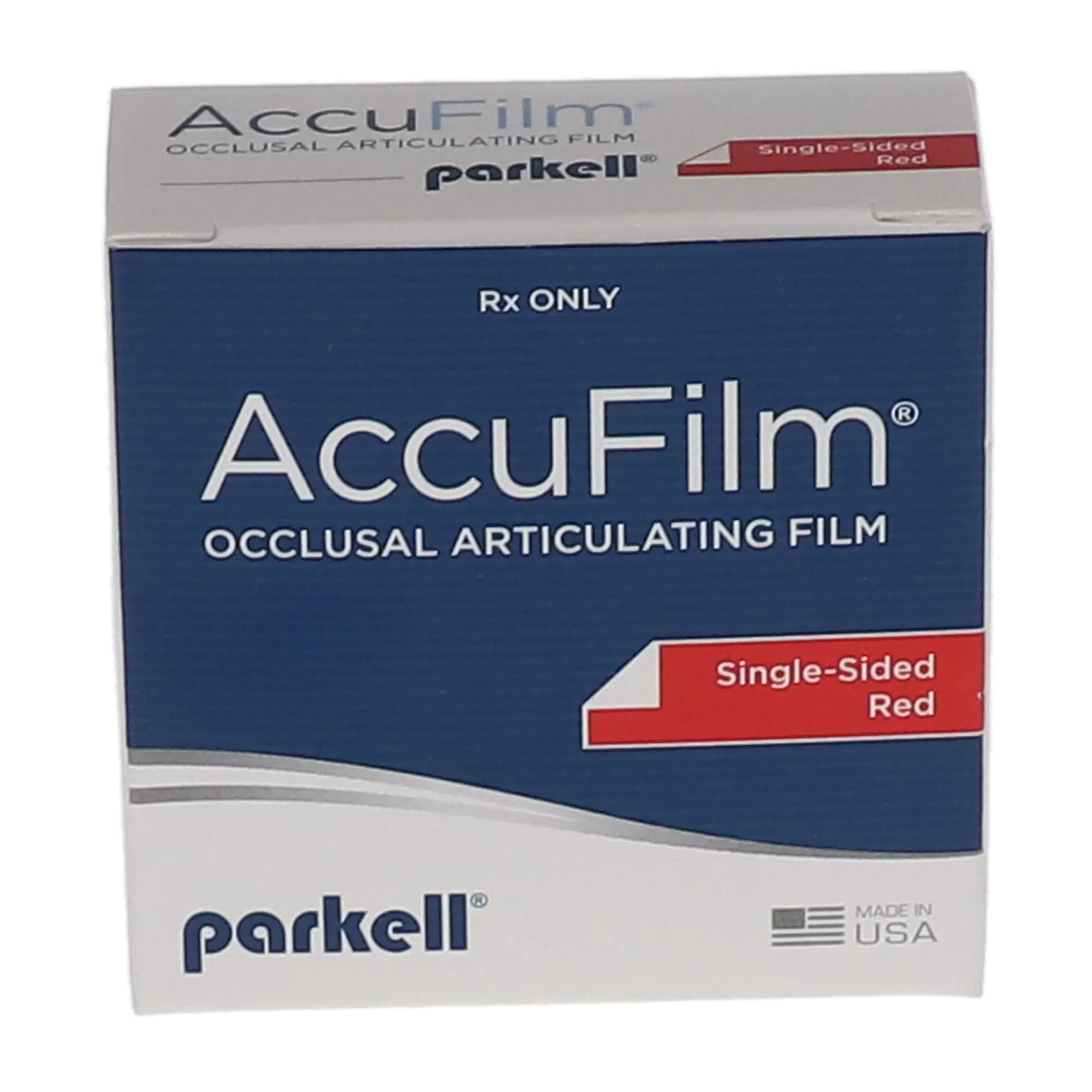 About this product Ideal for occlusal equilibration Does not break easily Prevents bite distortions Guarantees accurate markings Accu Film is a single-side articulating film for occlusal symmetry and restoration calibration. The stretchable but non-breakable construction ensures the consistent creation of accurate marks without false markings or bite distortions for convenient...