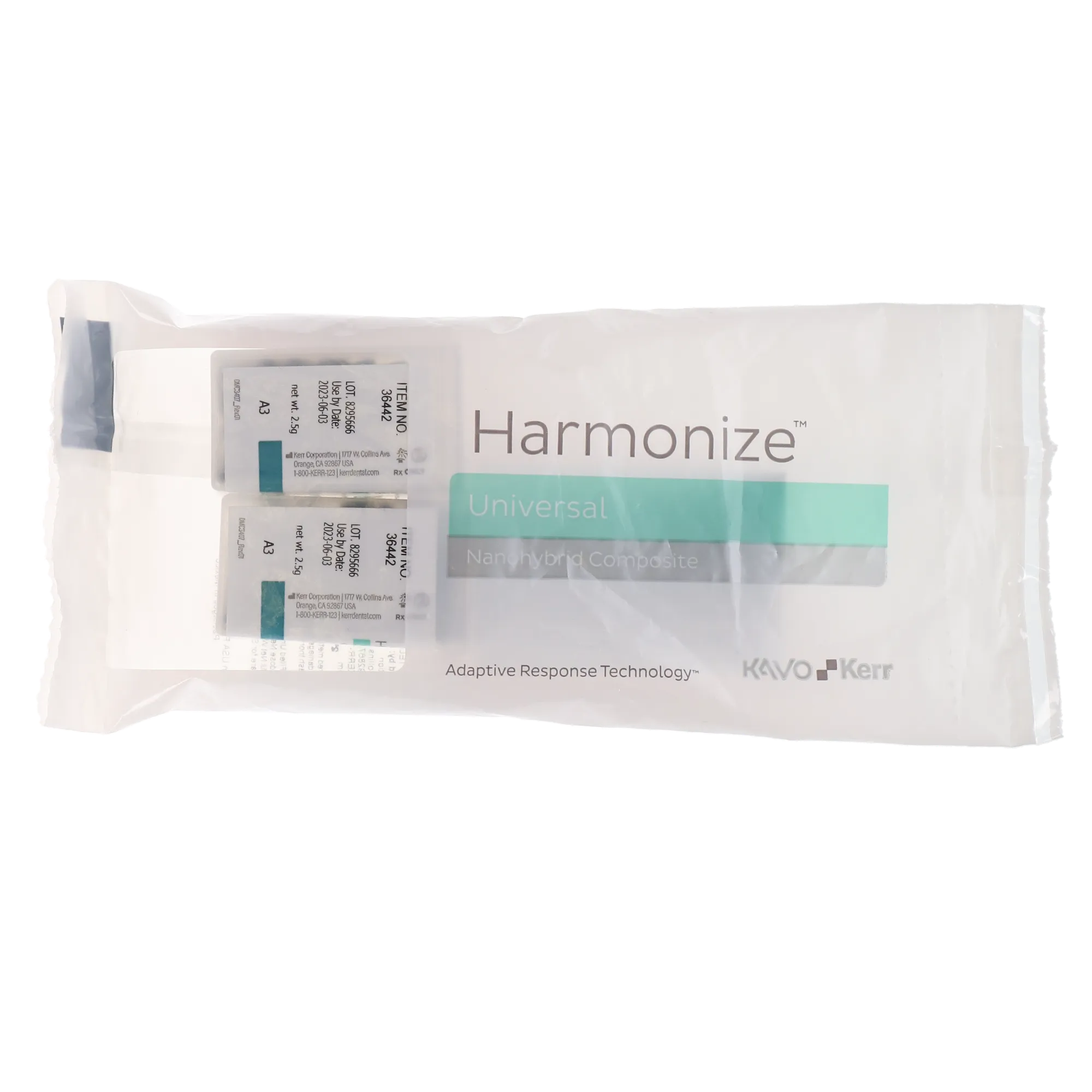 Harmonize Nanohybrid Universal Composite is a dental restorative indicated for the placement of direct restorations. It contains light-curing properties that result in more esthetic and natural-looking restorations through a variety of shades and shade types.