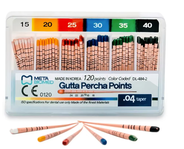 Gutta Percha Points Dia-ISO GT .06 Taper 60/Box are meticulously crafted dental instruments designed to aid in endodontic procedures. Engineered with precision, these points feature a standardized diameter and ISO GT .06 taper, ensuring consistent performance and optimal compatibility with various root canal systems. With 60 points contained within each box, dental professionals are equipped with an ample supply to address a range of patient needs. The use of gutta percha, a resilient and biocompatible material, ensures reliable sealing of root canals, effectively preventing bacterial ingress and promoting successful endodontic outcomes. These points are meticulously manufactured to meet stringent quality standards, guaranteeing uniformity and reliability in every application. The convenient packaging facilitates easy access and organization, streamlining the workflow in dental practices. Whether used in routine procedures or complex root canal treatments, Gutta Percha Points Dia-ISO GT .06 Taper 60/Box offer dentists a dependable solution for achieving precise obturation and ensuring the longevity of endodontic restorations.