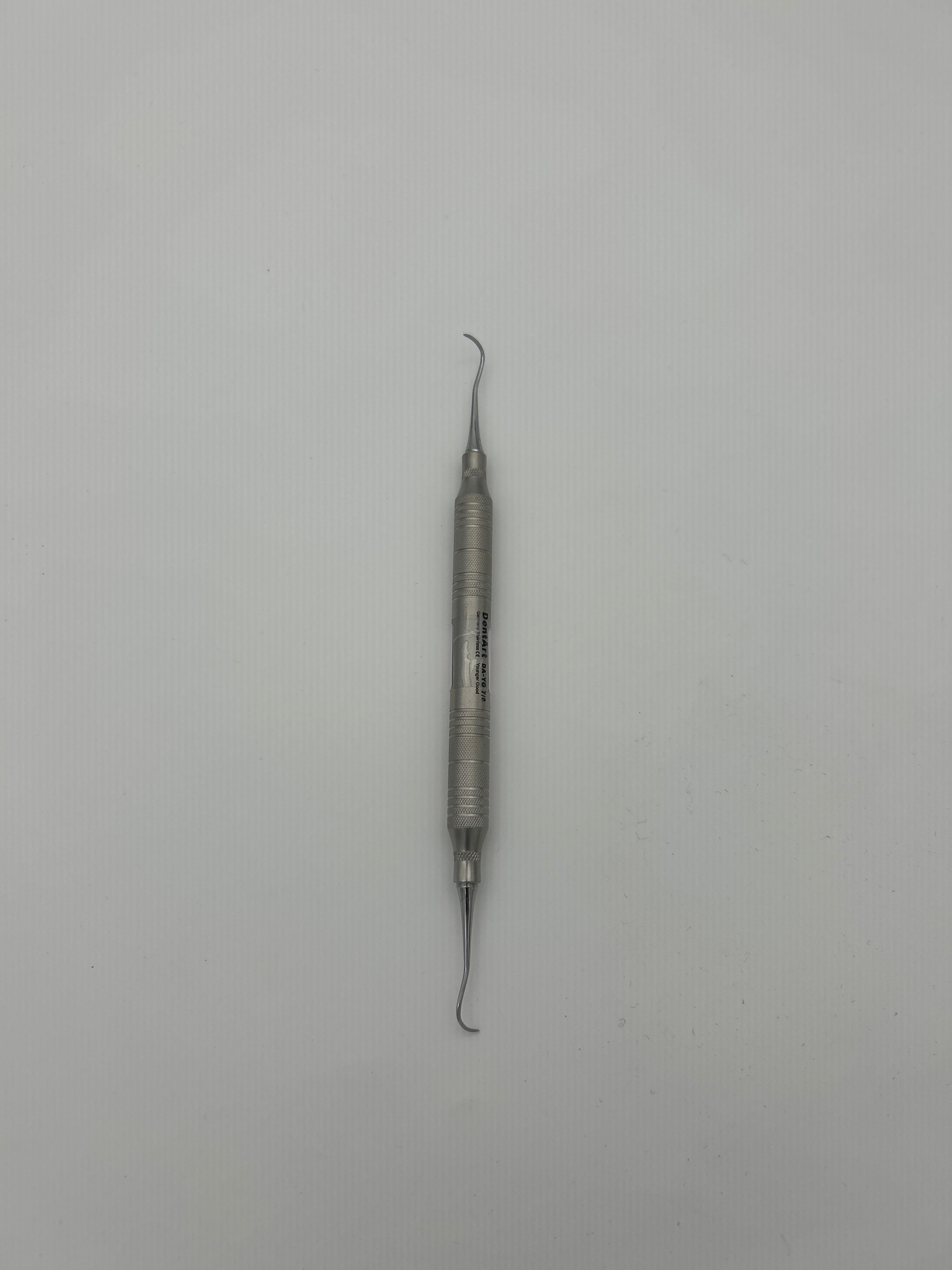 The Dent Art Younger Good 7/8 Universal Curette Scaler Periodontal Dental Instrument embodies precision and quality, designed to meet the exacting standards of dental professionals. Crafted with utmost care and attention to detail, this instrument is indispensable in the meticulous care of periodontal health. Its 7/8 universal design ensures versatility, allowing for efficient scaling and root planing procedures across a range of dental surfaces. Engineered for optimal performance, the curette scaler features a finely honed blade that effortlessly removes plaque, tartar, and calculus, promoting superior oral hygiene and gum health. Its ergonomic handle provides a comfortable grip, facilitating precise control and maneuverability during procedures. Trusted by dental practitioners worldwide, the Dent Art Younger Good 7/8 Universal Curette Scaler is a testament to innovation and excellence in dental instrument design.
