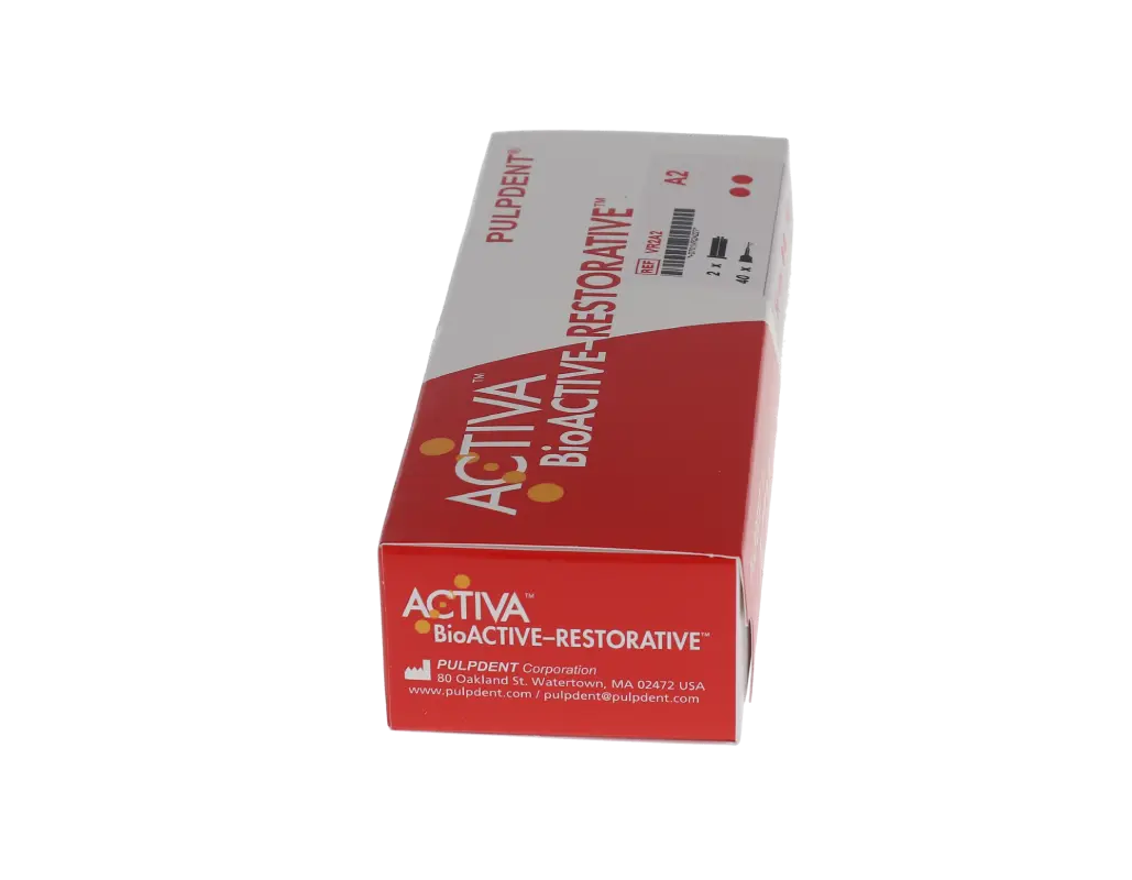Activa BioActive Restorative releases and recharges fluoride, calcium, and phosphates and contains zero Bisphenol A (BPA), Bis-GMA, and BPA derivatives. Each Value Refill Pack contains 2 (5 ml) syringes and 40 assorted mix tips.
