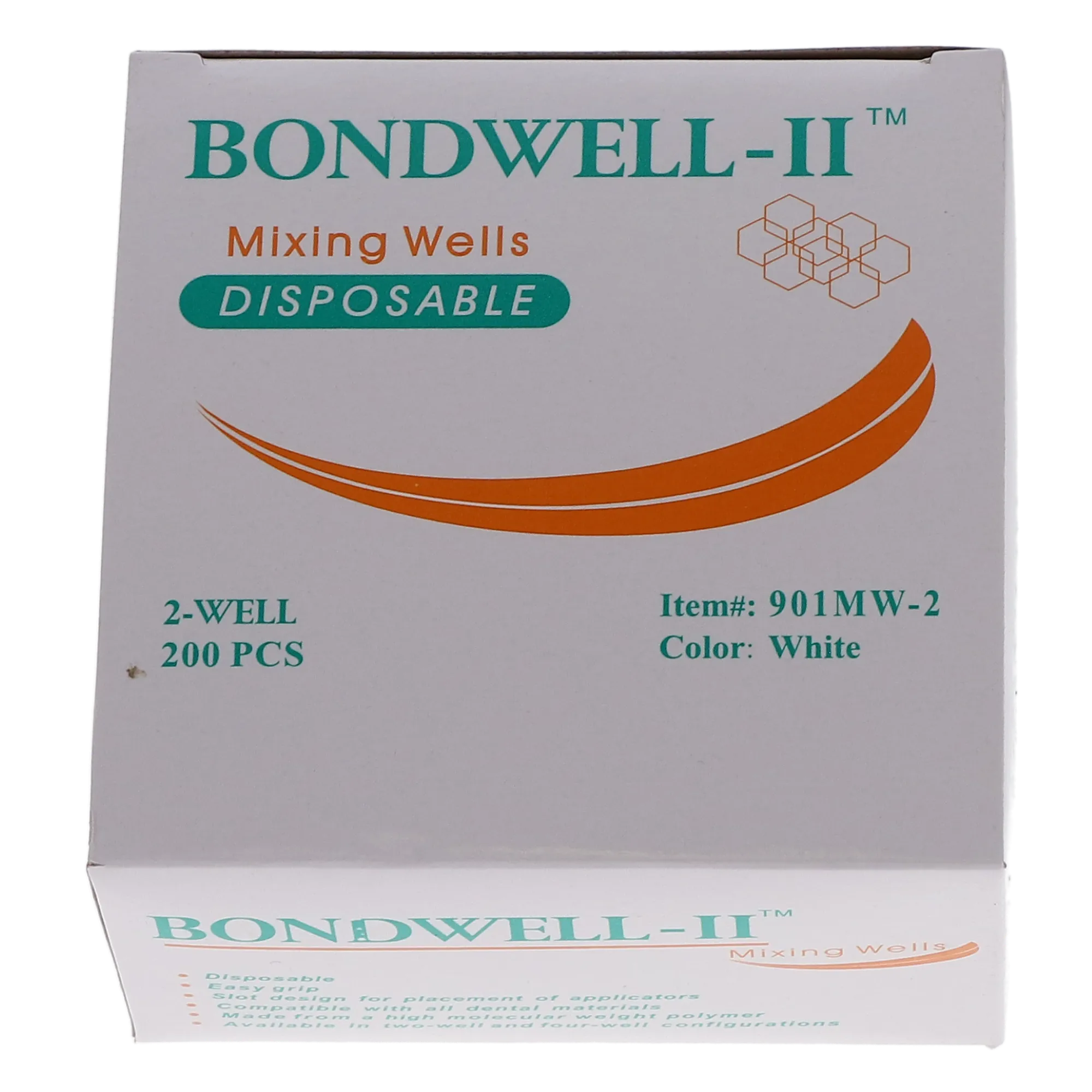 About this product Quantity: 200 per pack Colour: White Efficient Mixing: Ideal for mixing various dental materials The Bondwell-II Disposable 2-Well Mixing Well, available at Frontier Dental, is an essential accessory for any cosmetic dentistry practice. This product, identified by model number 901MW-2, comes in a pack of 200 and...