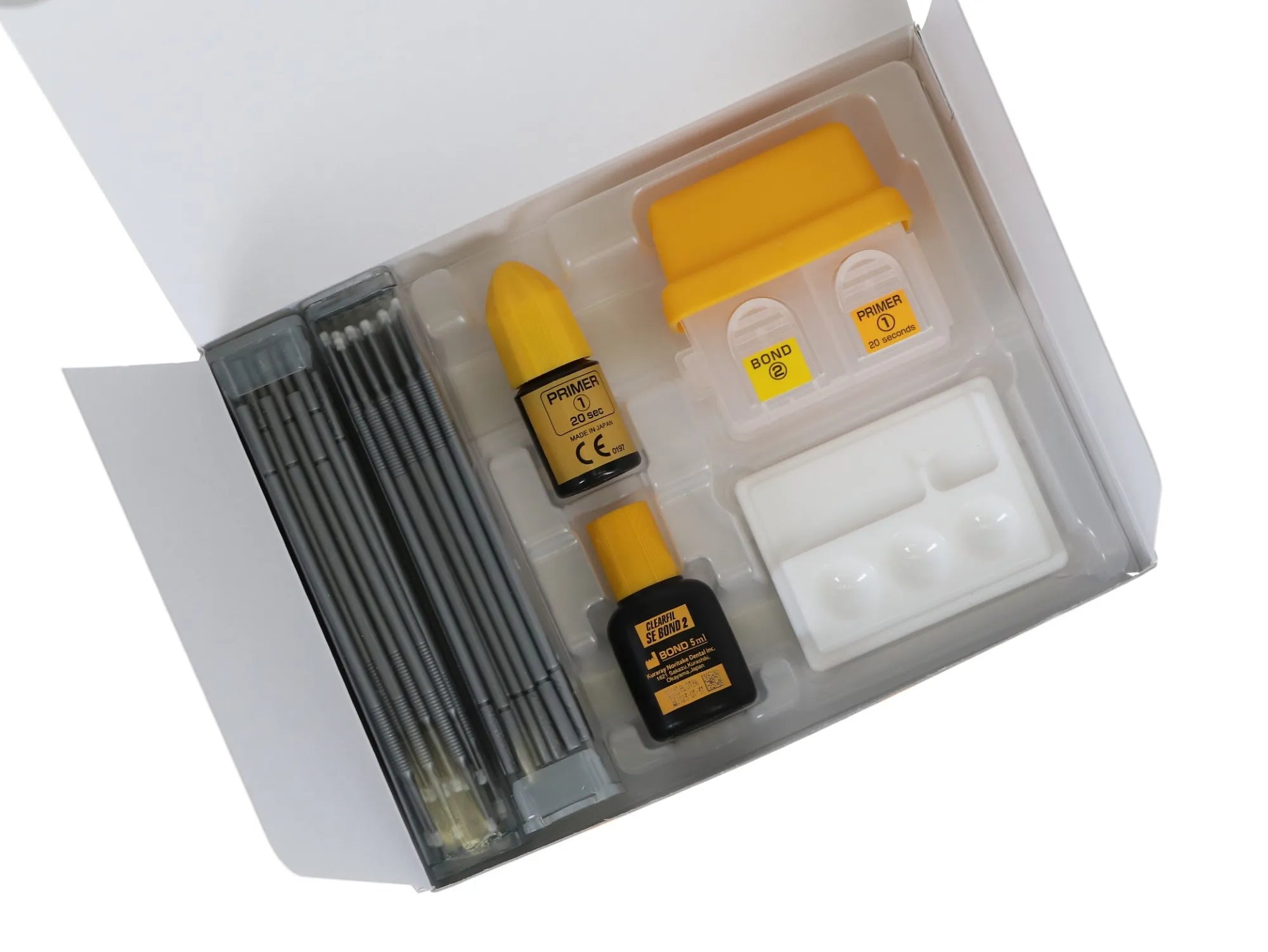 Clearfil SE comes in a no-shake, no-mix, no-scrub formulation.Each Kit includes 1 (6 ml) bottle primer, 1 (5 ml) bottle bond, 100 disposable brush tips, 1 mixing plate and 1 light-blocking plate.