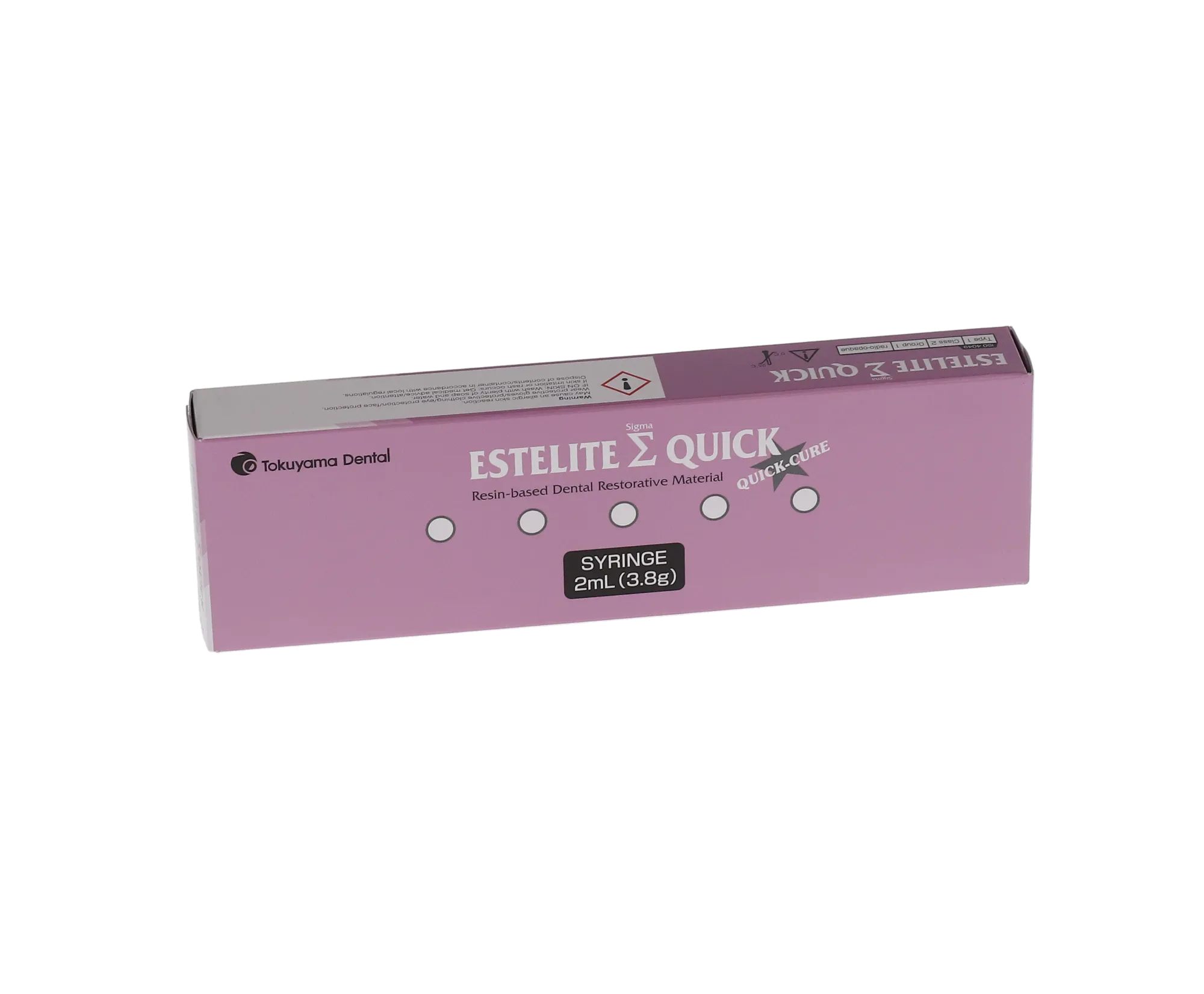 About this product Indicated for anterior and posterior restorations and repairs Guarantees high abrasion resistance Reduces opposing teeth shrinkage and wear Fast curing time of 90 seconds Estelite Sigma Quick universal supranano filled resin composite uses a patented spherical filler technology. The unique Chameleon effect of the spherical fillers produces...