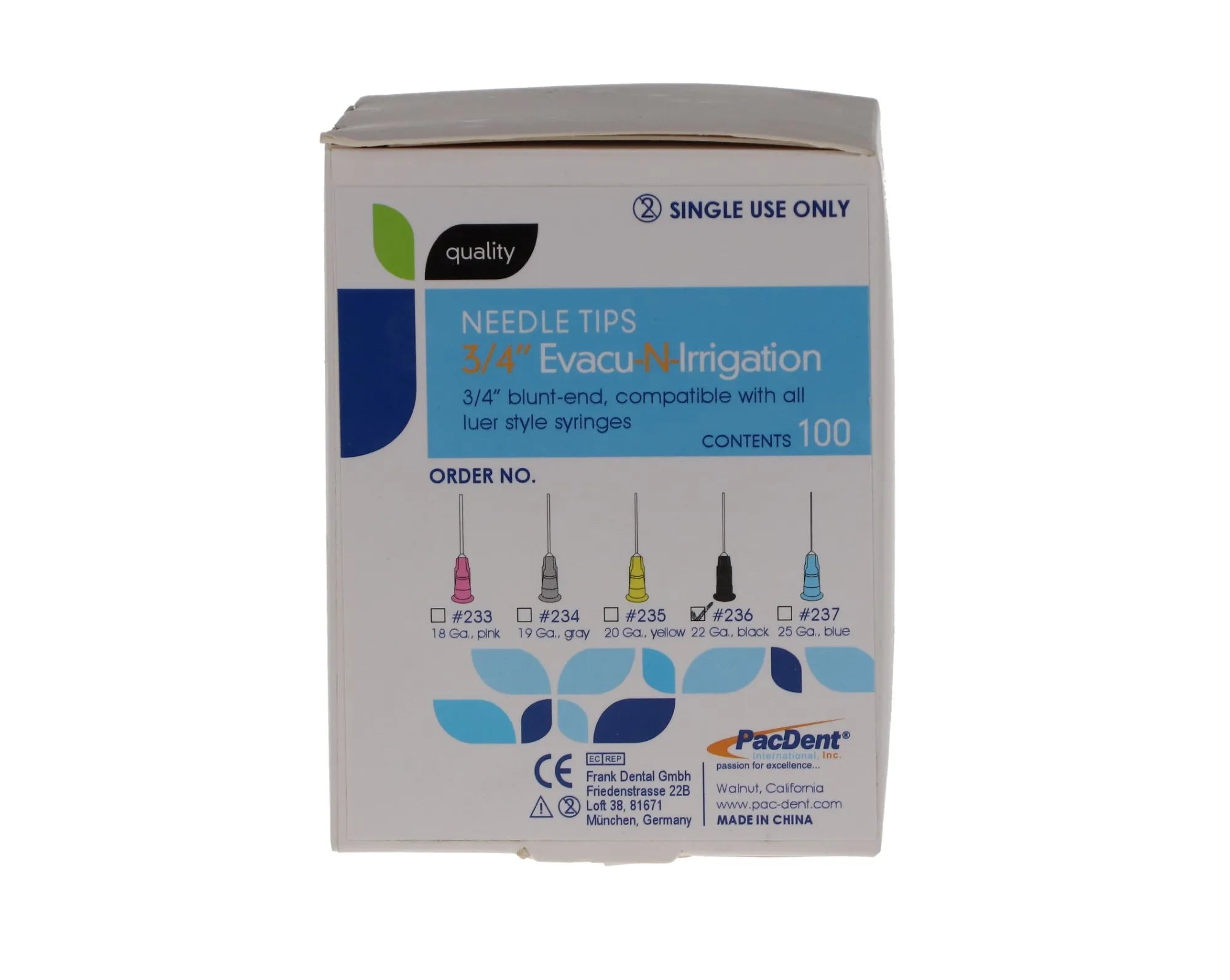 Evacu-N-Irrigation Needle Tips, 22 Ga, 3/4", Black, 100/Pk, 236