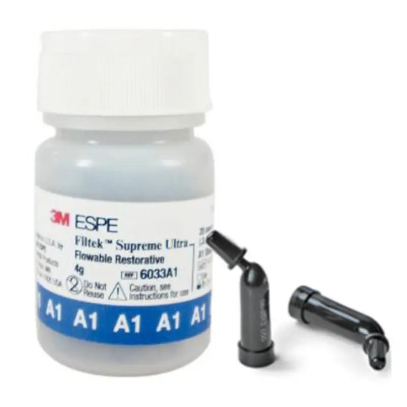 Providing a quick answer to various restorations, the Filtek Supreme Ultra Flowable Composite matches the strength of the Filtek Supreme Plus Universal Restorative while maintaining the trademark "flow on demand" handling. The light-cured nanocomposite offers a formulation that is no oozing, slumping, or running, and at the same time holds its shape and shows excellent esthetic properties for guaranteed satisfaction.