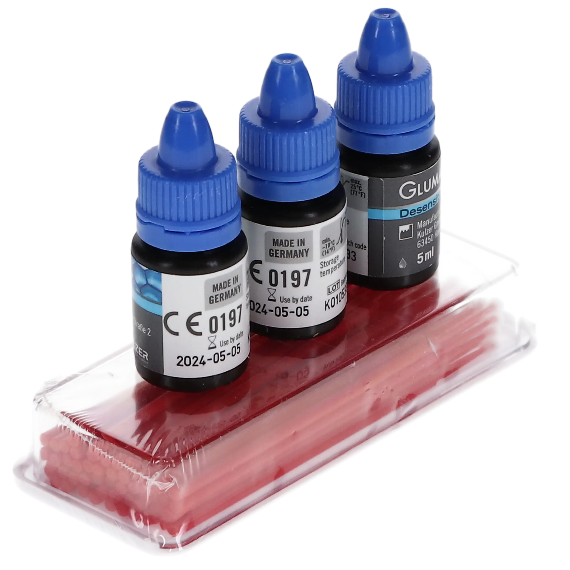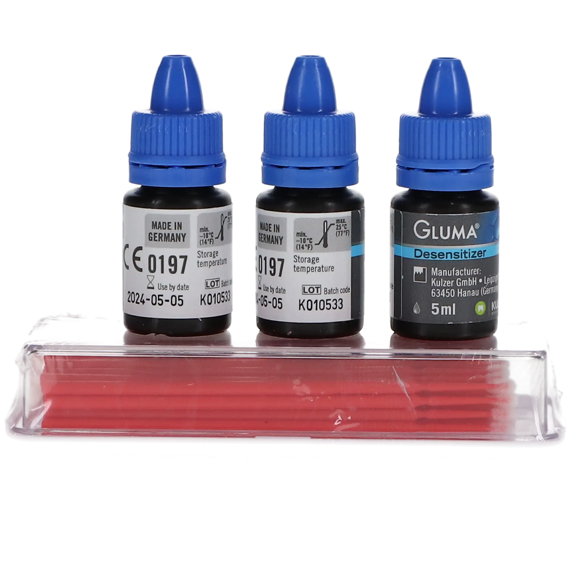 Gluma Desensitizer is a single-step desensitizer that provides treatment before priming and bonding for all restorations. It is universally compatible with all types of bonding and restorative materials in any condition, including direct composite restorations, setting compomers, and amalgam restorations.