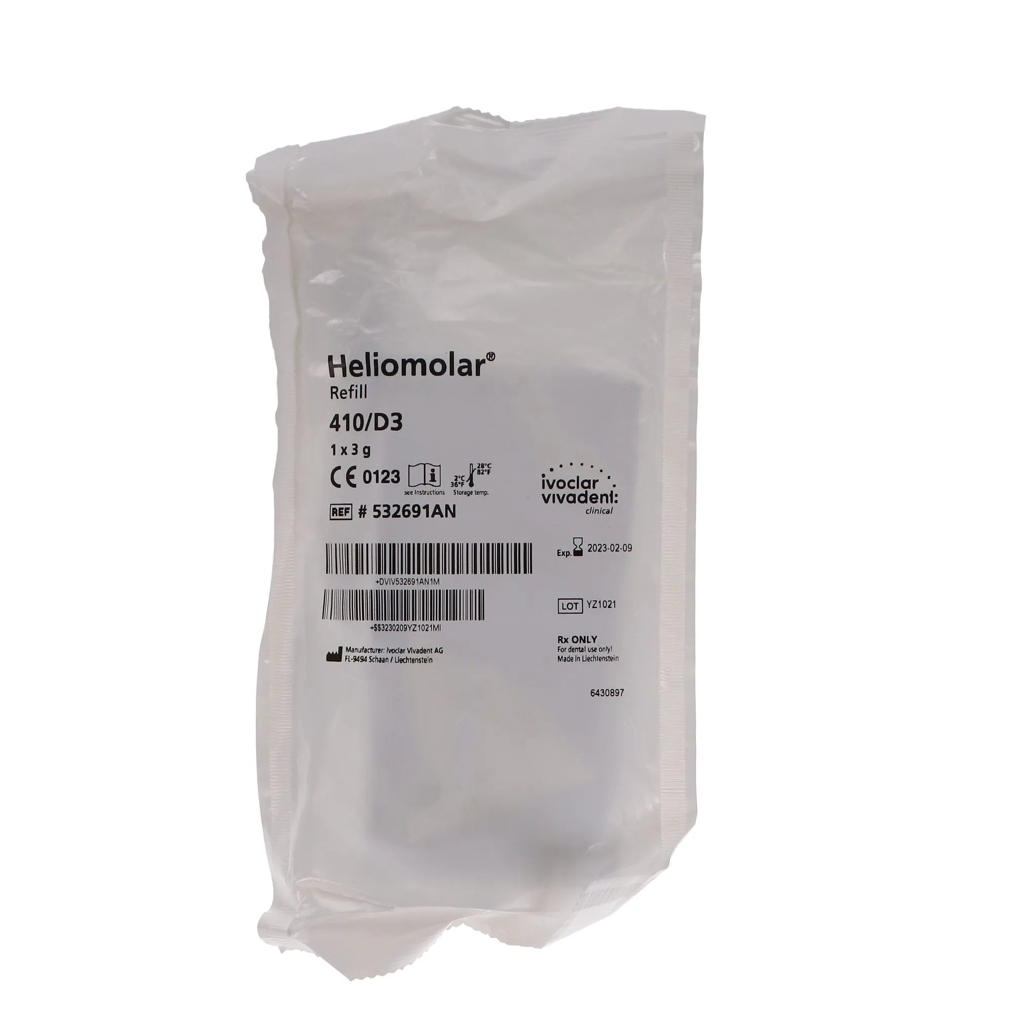 Heliomolar Universal Microfilled Composite, LC, Syringe Refill, Universal Viscosity, 3 g, 410/D3/35, 1/Pk, 532691