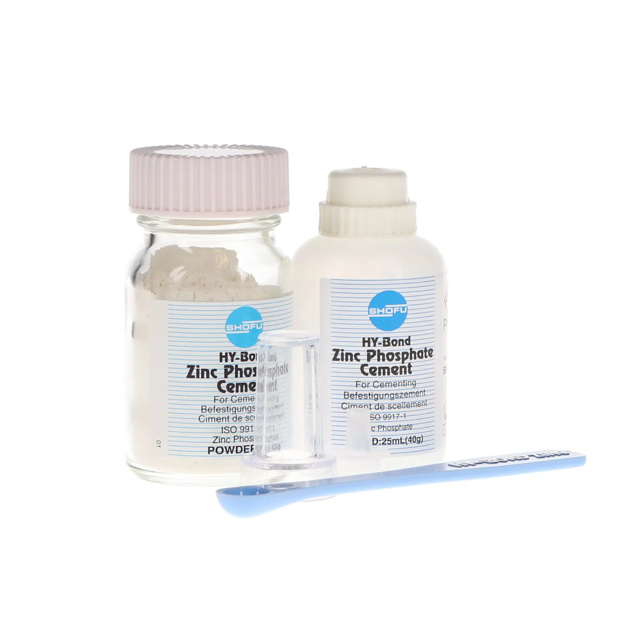 HY-Bond Zinc Phosphate Cement is a luting cement that combines the reliability and efficiency of a one-of-a-kind tanning fluoride additive and a zinc phosphate cement, resulting in great compressive strength. It contains a tannin-fluoride additive that seals dentin tubules, reducing patient sensitivity after operations.