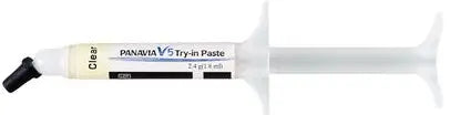 About this product Applied before Panavia V5 cement Provides perfect shade comparisons Best for various types of indirect restorations Convenient syringe dispensing on area of application Panavia V5 Try-In Paste facilitates shade assessment before using Panavia V5 cement, resulting in precise color matching with the paste. The universal paste comes...