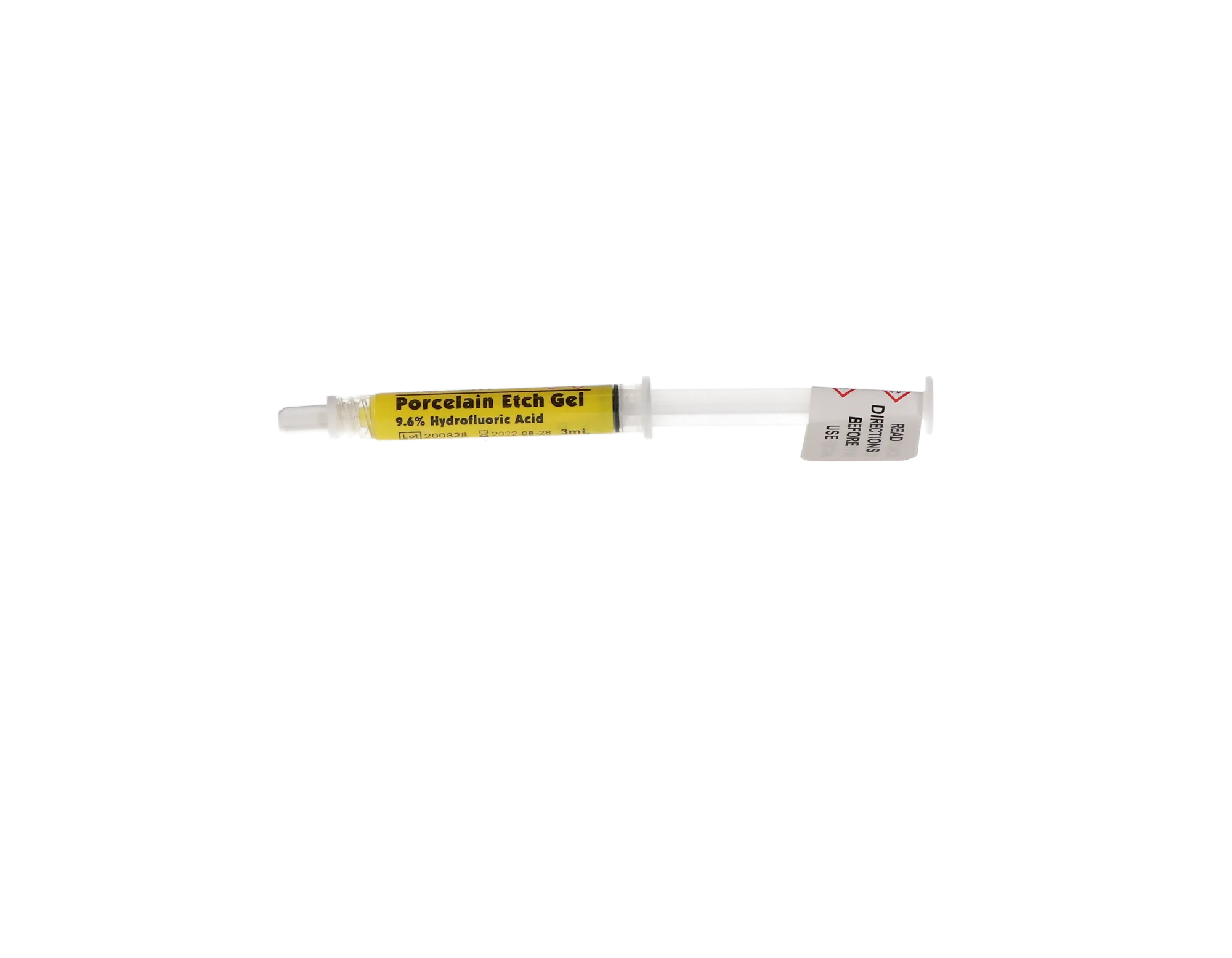 Porcelain Etch Gel, 9.6% Hydroflouric Acid, Syringe Refill, 3 ml, Yellow, 1/Pk, PEG-3