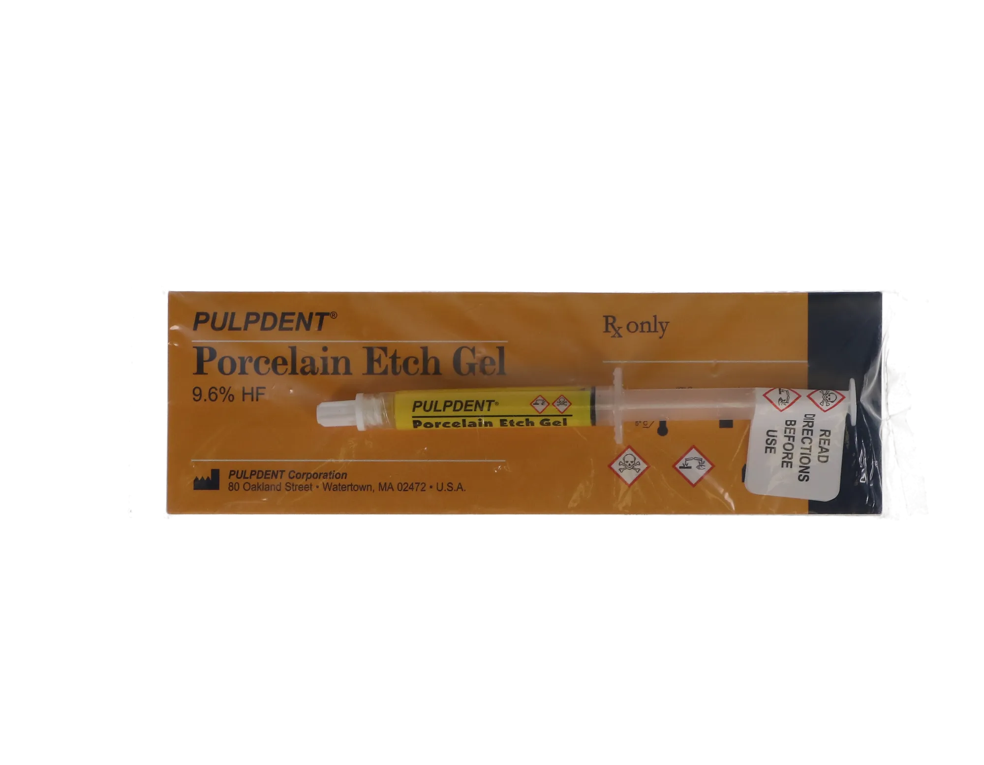 About this product 9.6% hydrofluoric acid Etches porcelain inlays, crowns, and veneers Rapid etching in just one minute Leaves no residue or stains Porcelain Etching Gel is an excellent 9.6% hydrofluoric acid formulation used for etching veneers, inlays, and crowns.The one-minute etching ability is ideal for damaged porcelain surfaces before...