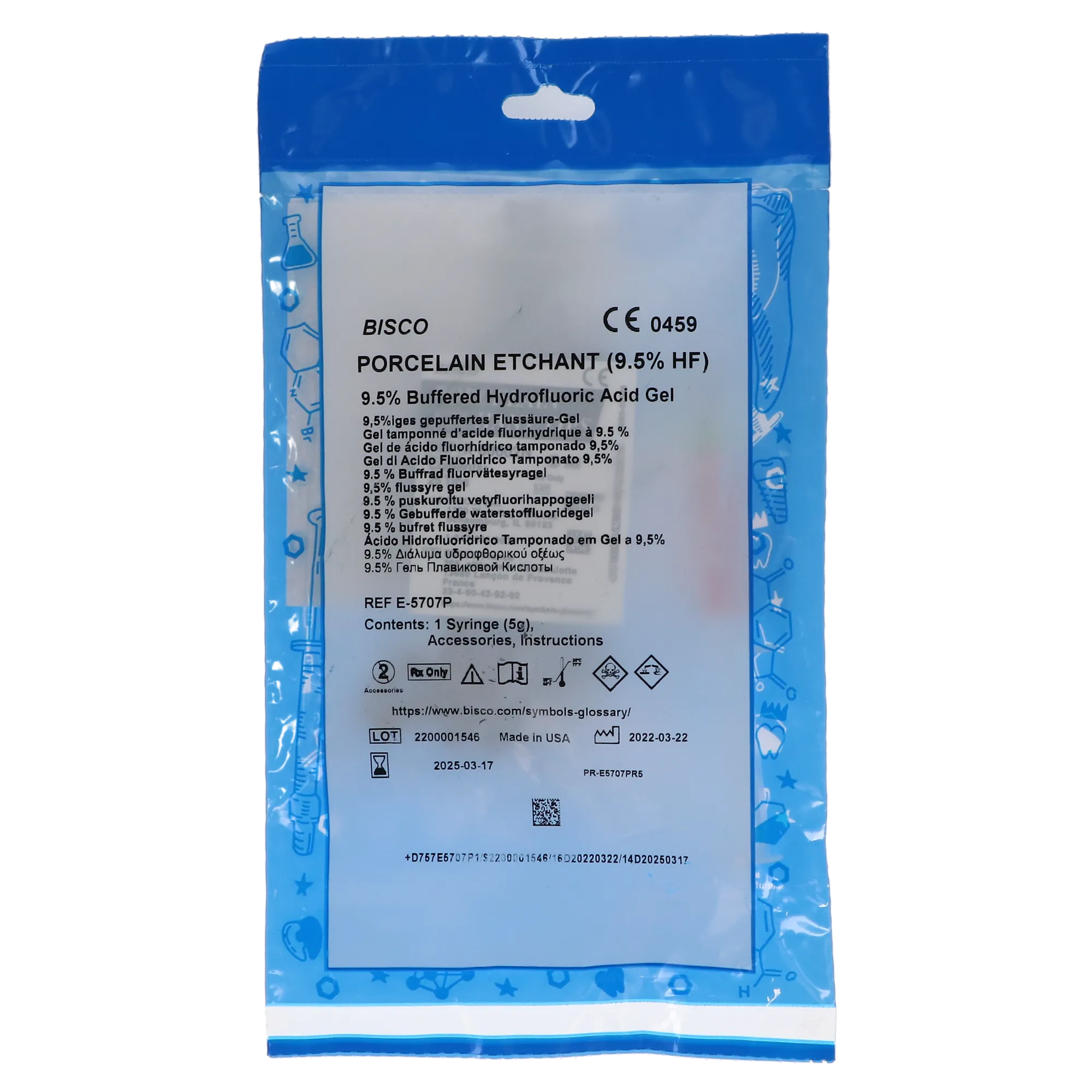 Porcelain Etchant Gel, 9.5% Hydrofluoric Acid, Syringe Refill, 5 g, 1/Pk, E-5707P