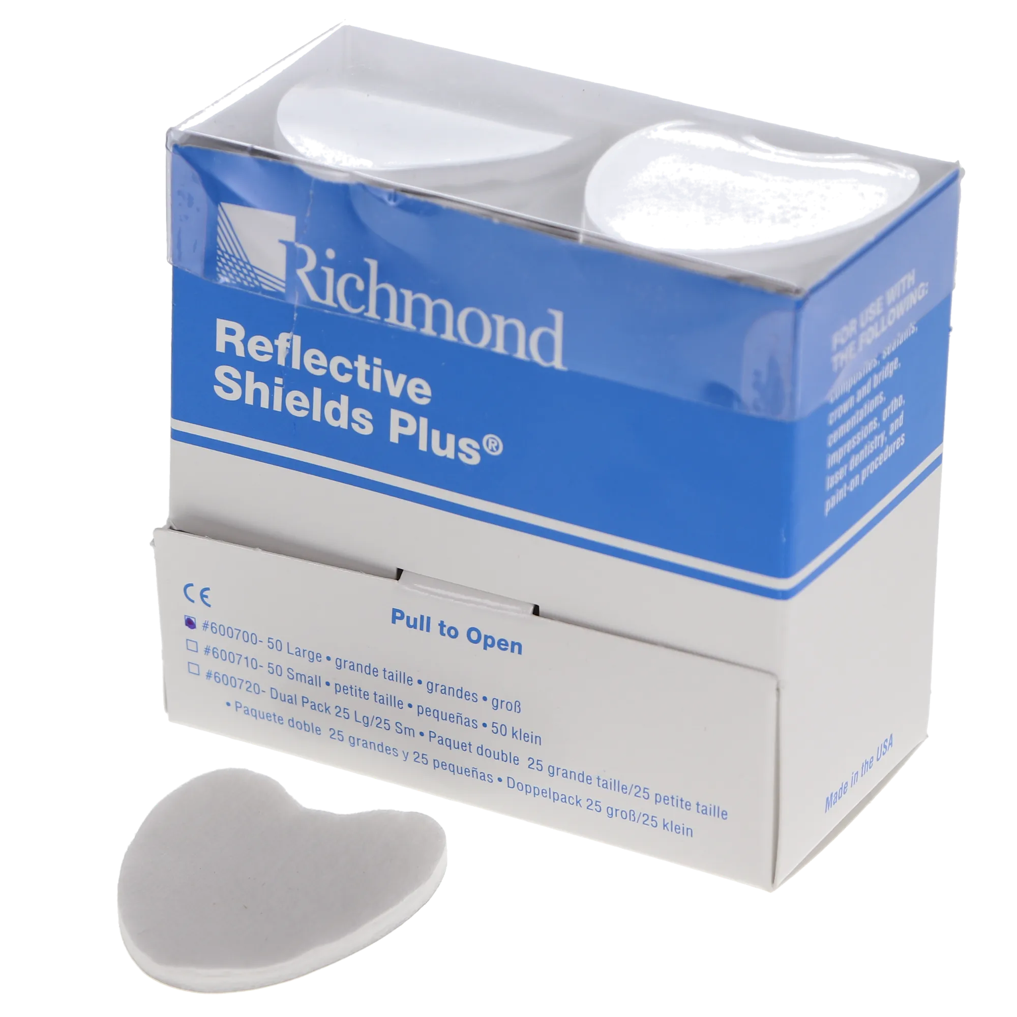 Reflective Shield Plus is perfect for multiple dental procedures such as sealants, restoration, crown preparations, and composite fillings. Available in large and small sizes to fit oral cavities of patients of different ages.