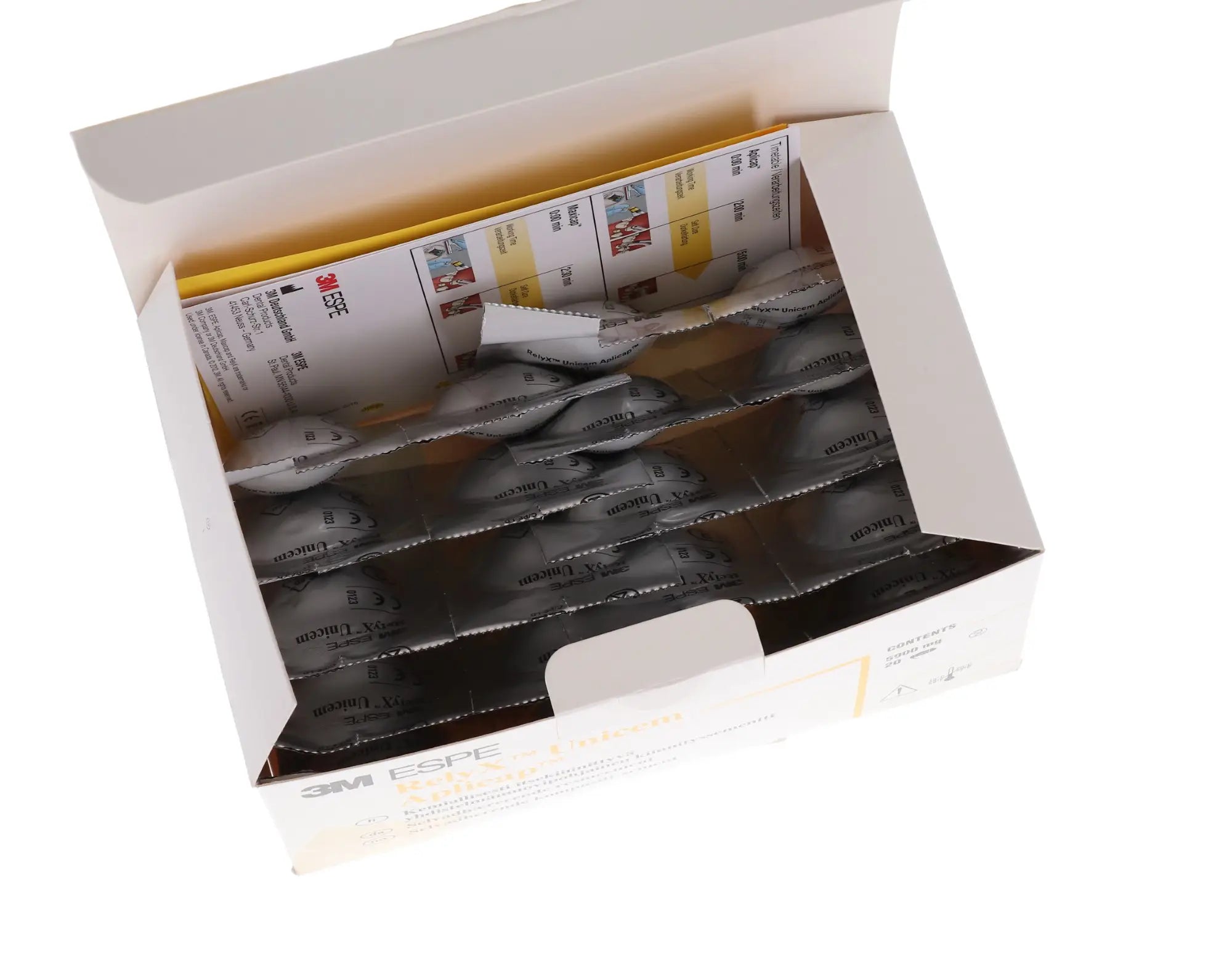 RelyX Unicem Aplicap is a universal resin cement that simplifies techniques by eliminating a complex array of technique-sensitive cement. It has self-adherent and moisture-tolerant properties with improved esthetics for practically all indications, from gold crowns to ceramic inlays.