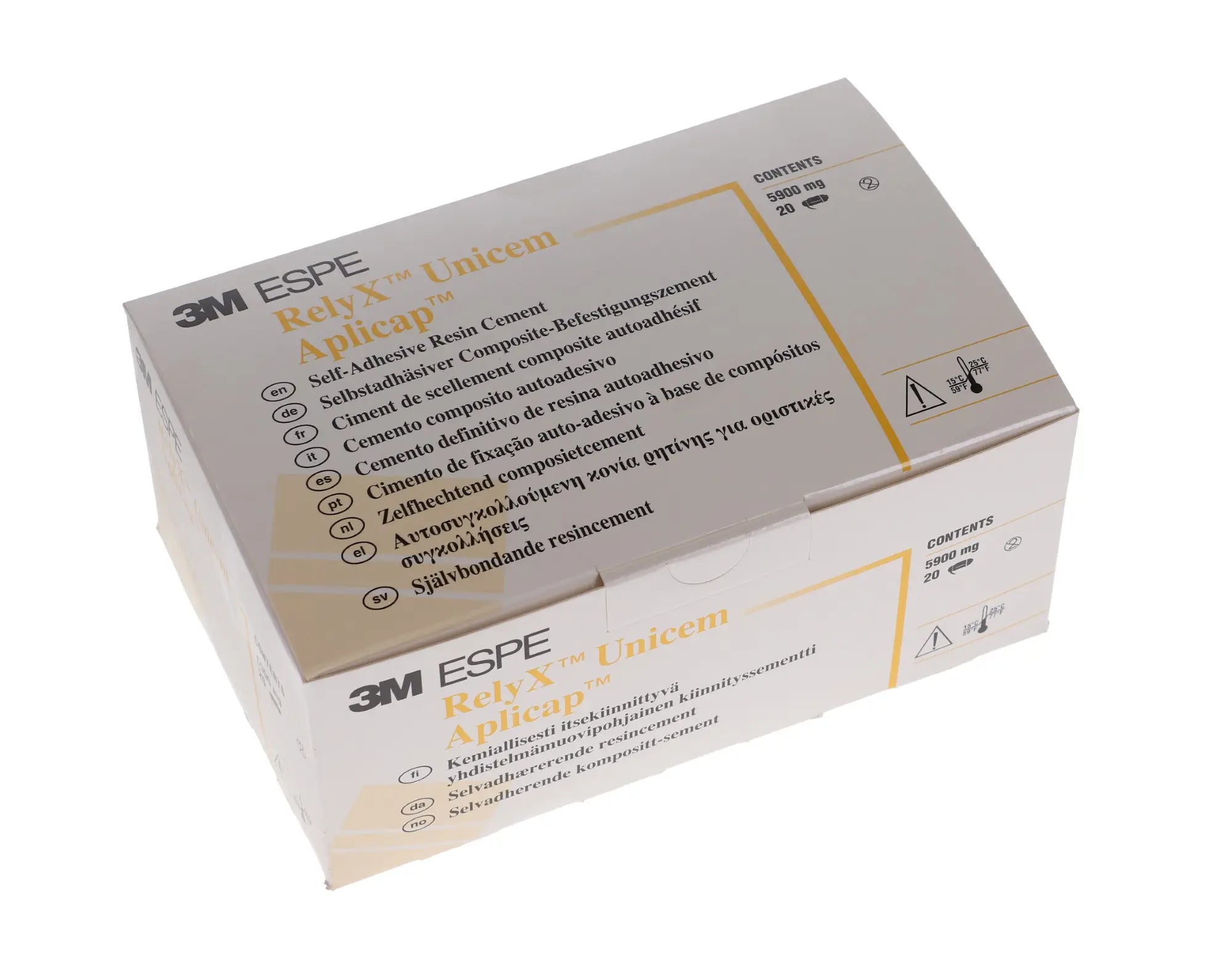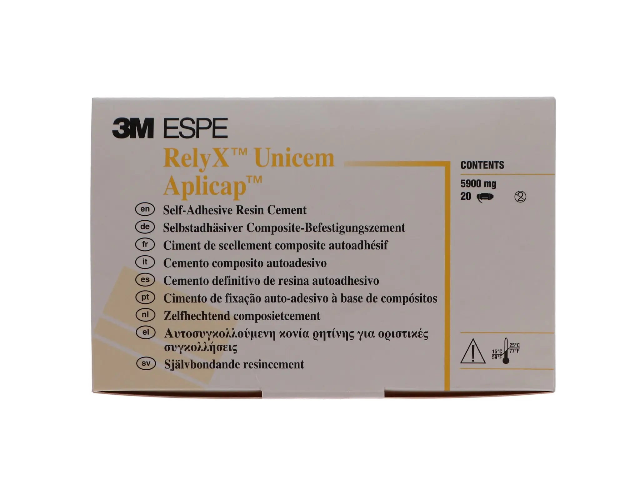 About this product Versatile cement for simplified techniques Reduces the incidence of post-operative sensitivity Self-adherent and moisture-tolerant Used for gold crowns and ceramic inlays RelyX Unicem Aplicap is a universal resin cement that simplifies techniques by eliminating a complex array of technique-sensitive cement. It has self-adherent and moisture-tolerant properties with...