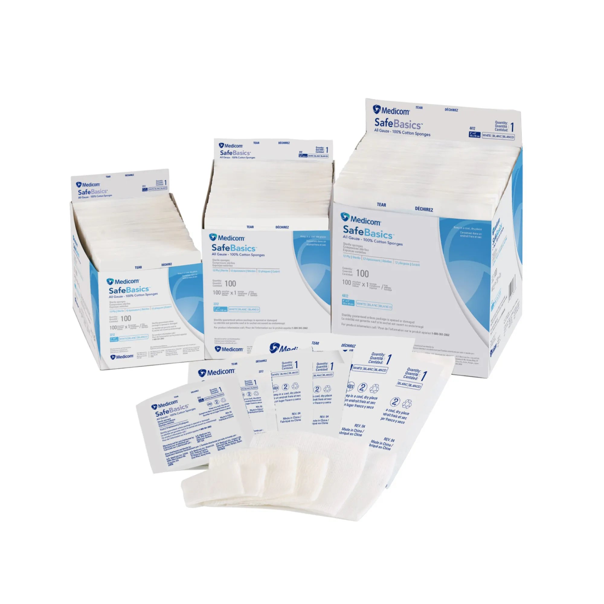 SafeBasics All Gauze Sponges Sterile 1's, 12-Ply, 1200/Pk