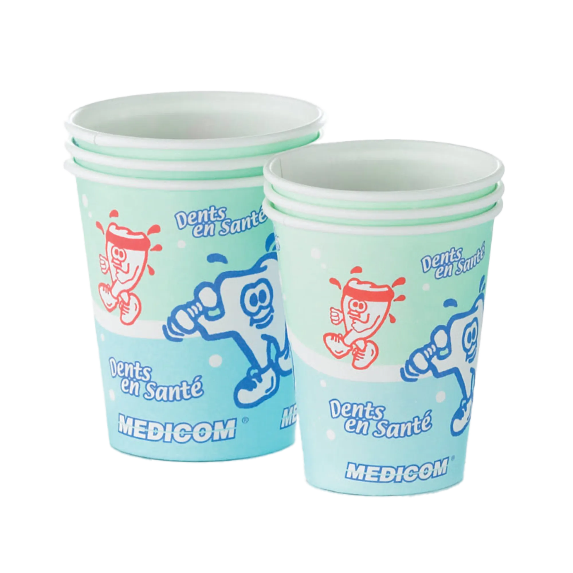 Medicom's SafeBasics™ Poly-Coated Paper Cups in 4 oz size feature a Healthy Teeth design, perfect for dental offices. These cups are not only biodegradable but also latex-free, ensuring a safe and comfortable experience for patients.