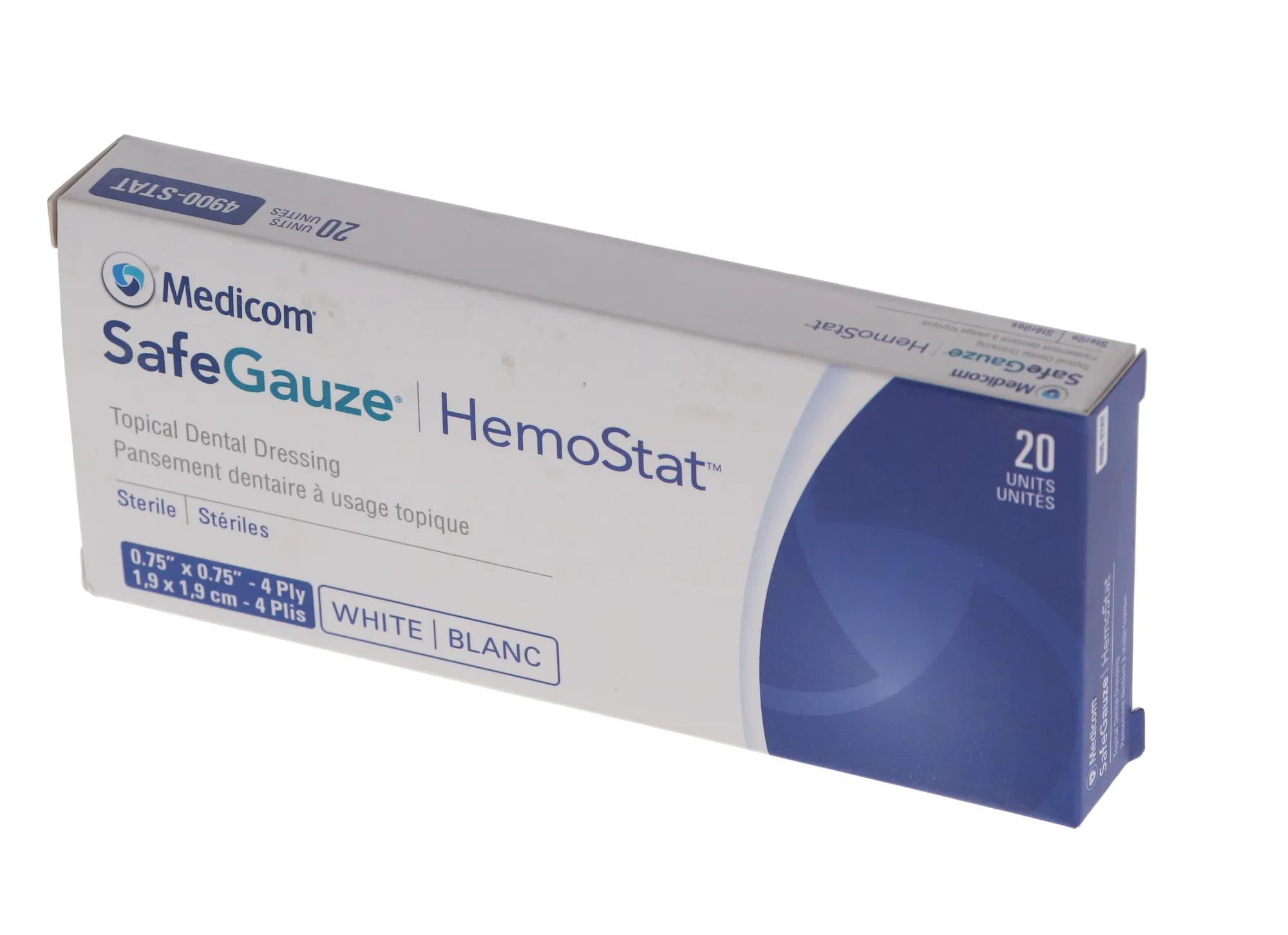 SafeGauze HemoStat Topical Hemostatic Dressing, 0.75" x 0.75", 20/Pk, 4900-STATC