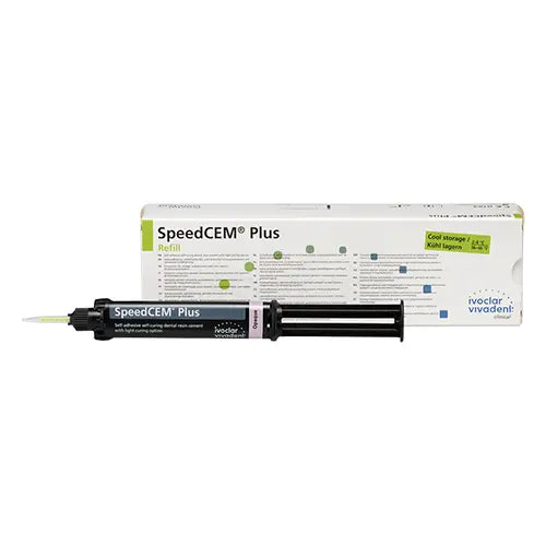 About this product Ideal for zirconium oxide-based restorations and metal ceramics Self-adhesive and self-curing Promotes time-saving and direct applications Excellent radiopacity SpeedCEM Plus is a self-adhesive, self-curing resin cement that offers optional light-curing. It combines performance and ease-of-use with an optimized formulation that makes it ideal for use in conjunction...