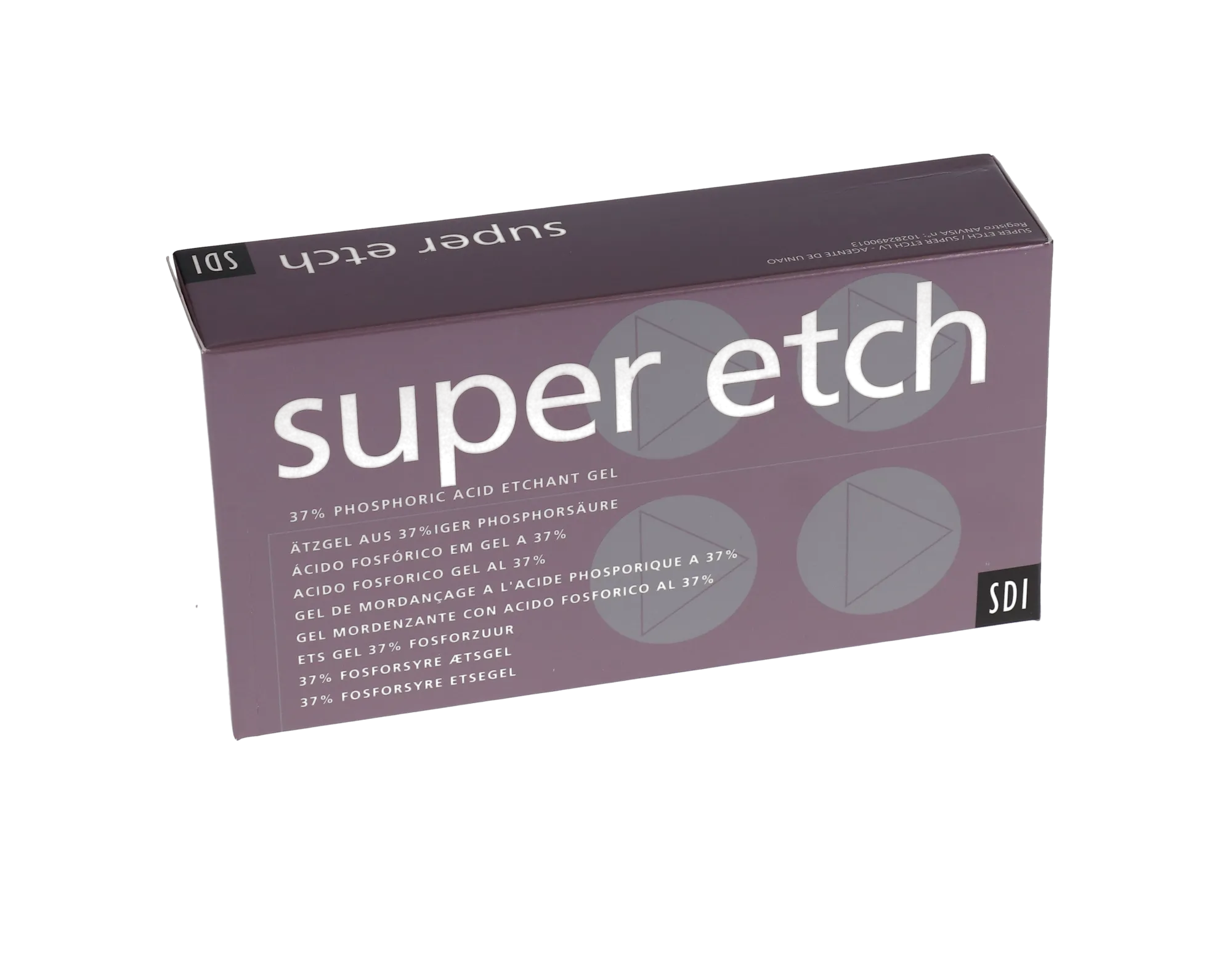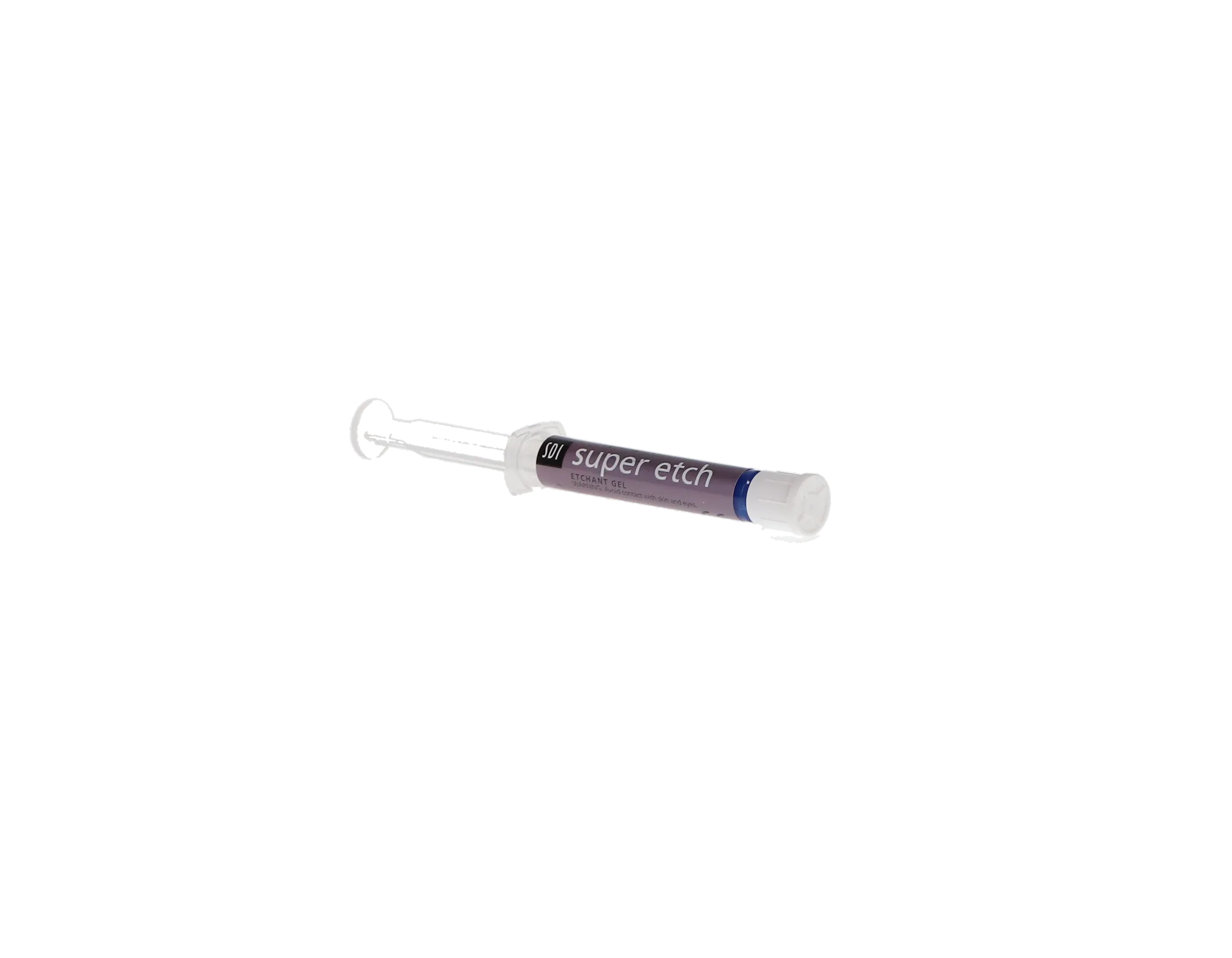 Super Etch Syringe Kit. 37% Phosphoric Acid Etch Gel, Bulk Kit: 10 - 2 mL (2.5 gram) Syringes and 50 (23 Ga.) Blue Tips. Super Etch is a low viscosity etching gel with 37 wt % phosphoric acid, which works exceptionally well with enamel and dentin. Precision placement is made possible due to its high visibility allowing for better control.