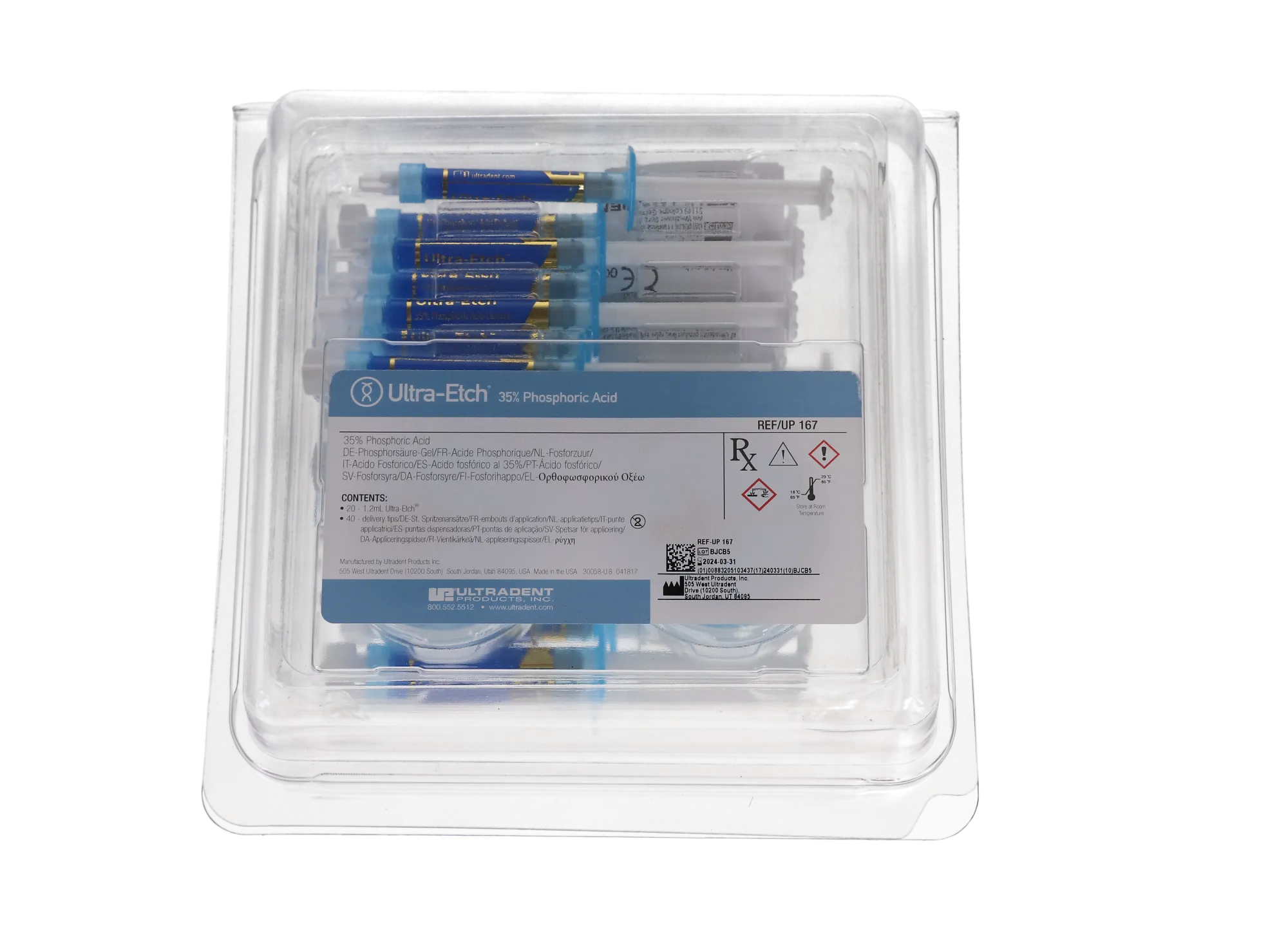 Ultra-Etch Etching Gel, 35% Phosphoric Acid, Syringe Econo Kit, 1.2 ml, Blue, 20/Pk, 167