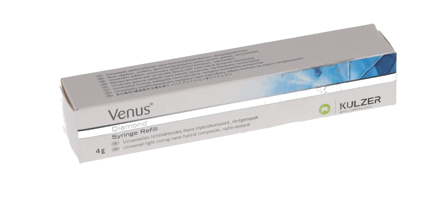 Venus Diamond composite integrates low shrinkage with superior durability in a formulation ideal for dental anterior and posterior restorations. The innovative nano-hybrid content facilitates perfect shade adaption to the surrounding tooth structure, easy polishing, and lasting shine.