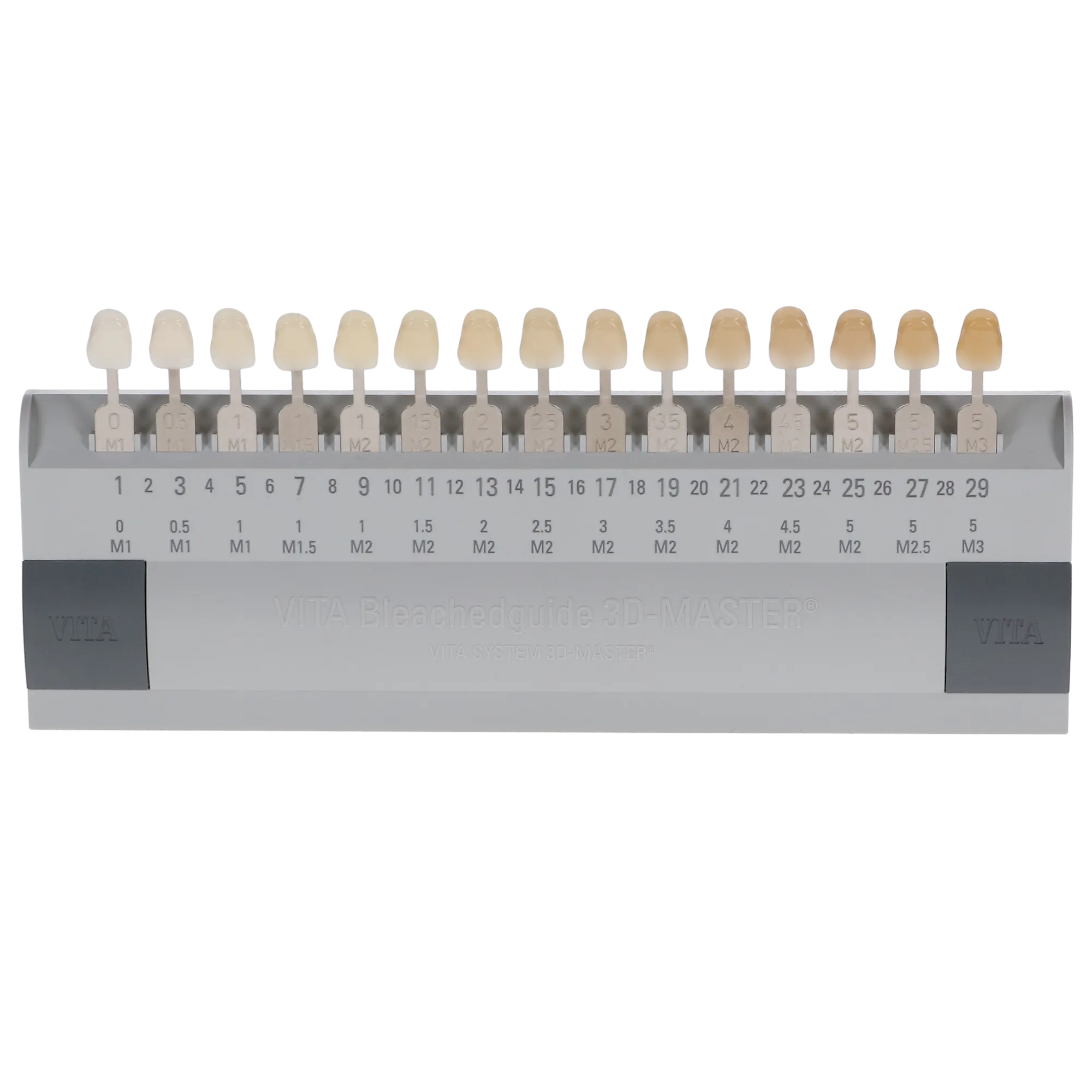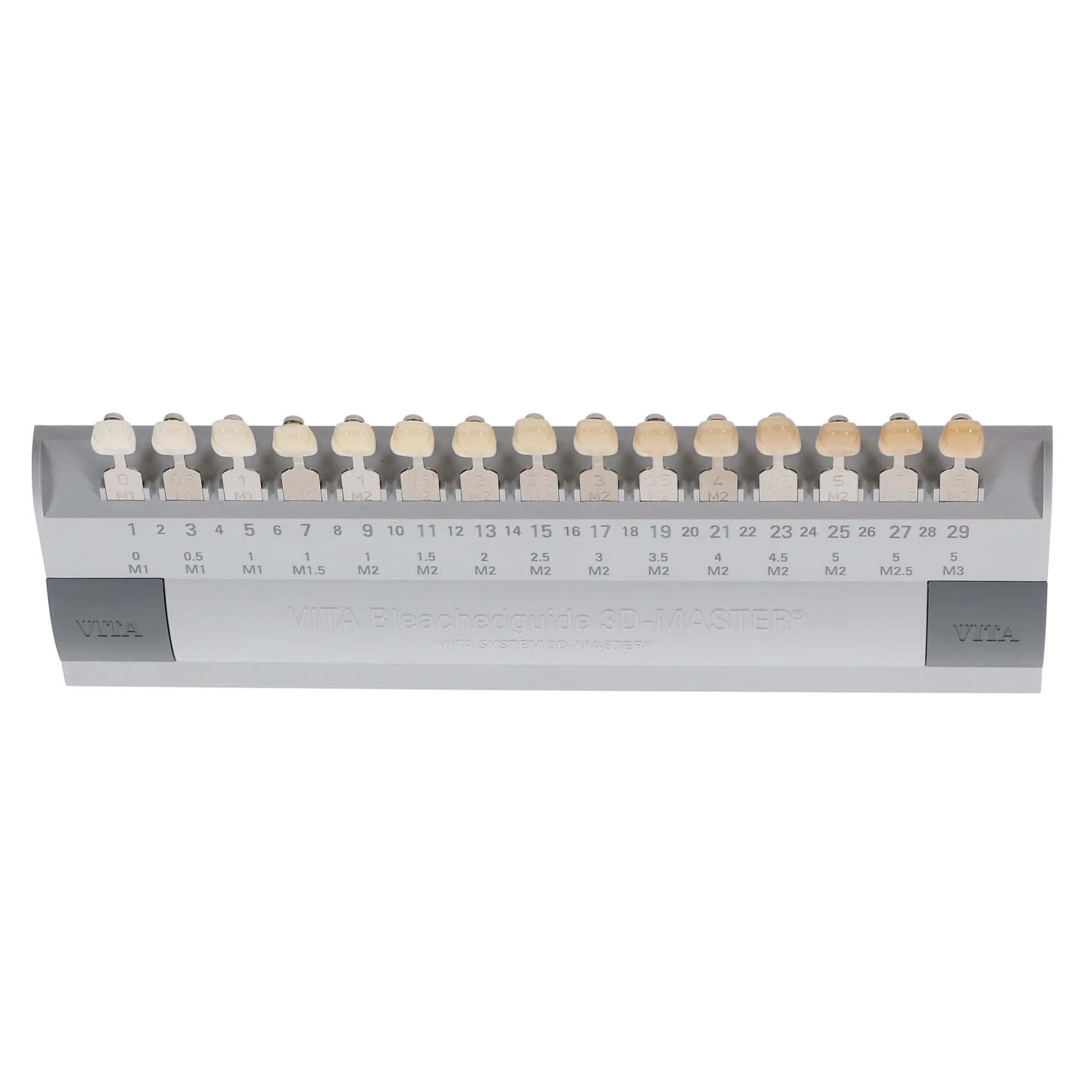 About this product Used to monitor patient tooth bleaching Features ready shade tabs Guarantees accurate measurments Offers full guide to bleaching process The Vita Bleachguide 3D-MASTER is a new shade guide that helps in the planning and monitoring of patient tooth whitening processes. It has immediate shade tabs arranged to...